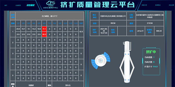宏源中科(北京)基礎(chǔ)工程有限公司承接了此項目部分樁基工程,采用專有的擠擴(kuò)支盤灌注樁技術(shù)。在施工過程中,應(yīng)用可視化支盤質(zhì)監(jiān)儀檢測設(shè)備,可以實時直觀的看到地下擠擴(kuò)機的擠擴(kuò)動作,并把擠擴(kuò)尺寸實時反映在操作屏上,并同步上傳至云端及客戶端。解決了支盤樁擠擴(kuò)隱蔽性強、質(zhì)量不易控制的缺點;在出現(xiàn)不符合設(shè)計要求時及時報警提醒,同時將擠擴(kuò)數(shù)據(jù)生成表格作為項目質(zhì)量檢測資料。該檢測設(shè)備采用工序中過程監(jiān)測和完成后成果檢測保證了支盤樁全流程質(zhì)量控制。